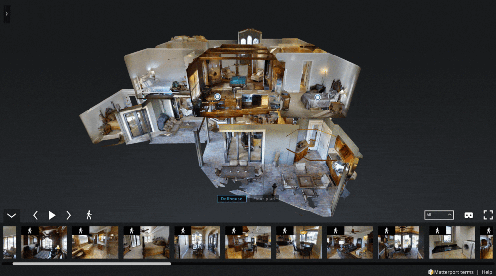 The 3D dollhouse view offers a captivating, interactive experience, allowing you to explore a virtual dollhouse in intricate detail and navigate through its rooms.
