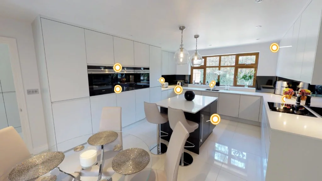 The 3D virtual tour is improved by adding interactive tour tags that provide thorough information about particular aspects of the property.