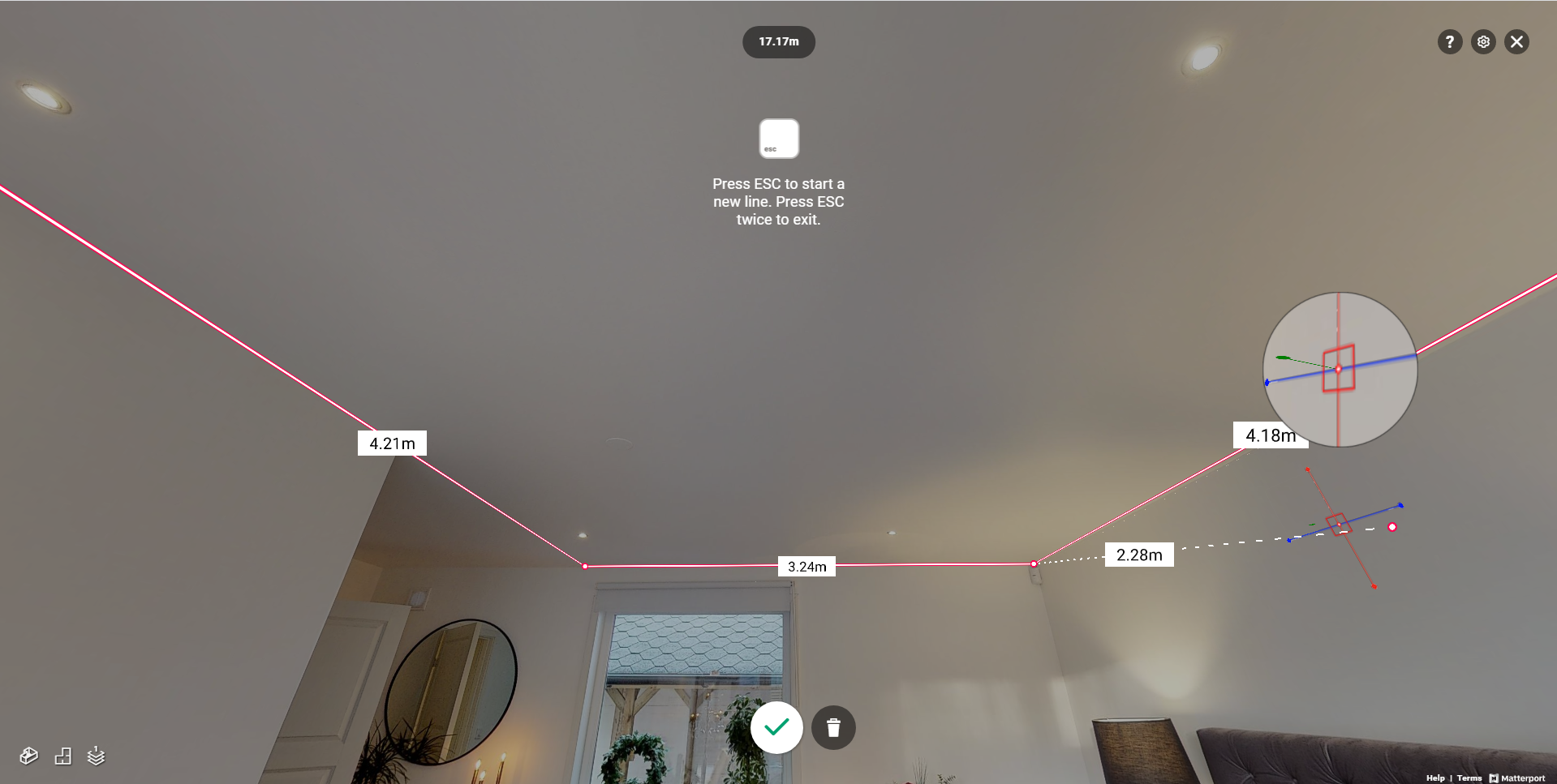 The measurement modes feature allows viewers to take accurate measurements of different areas of the property.